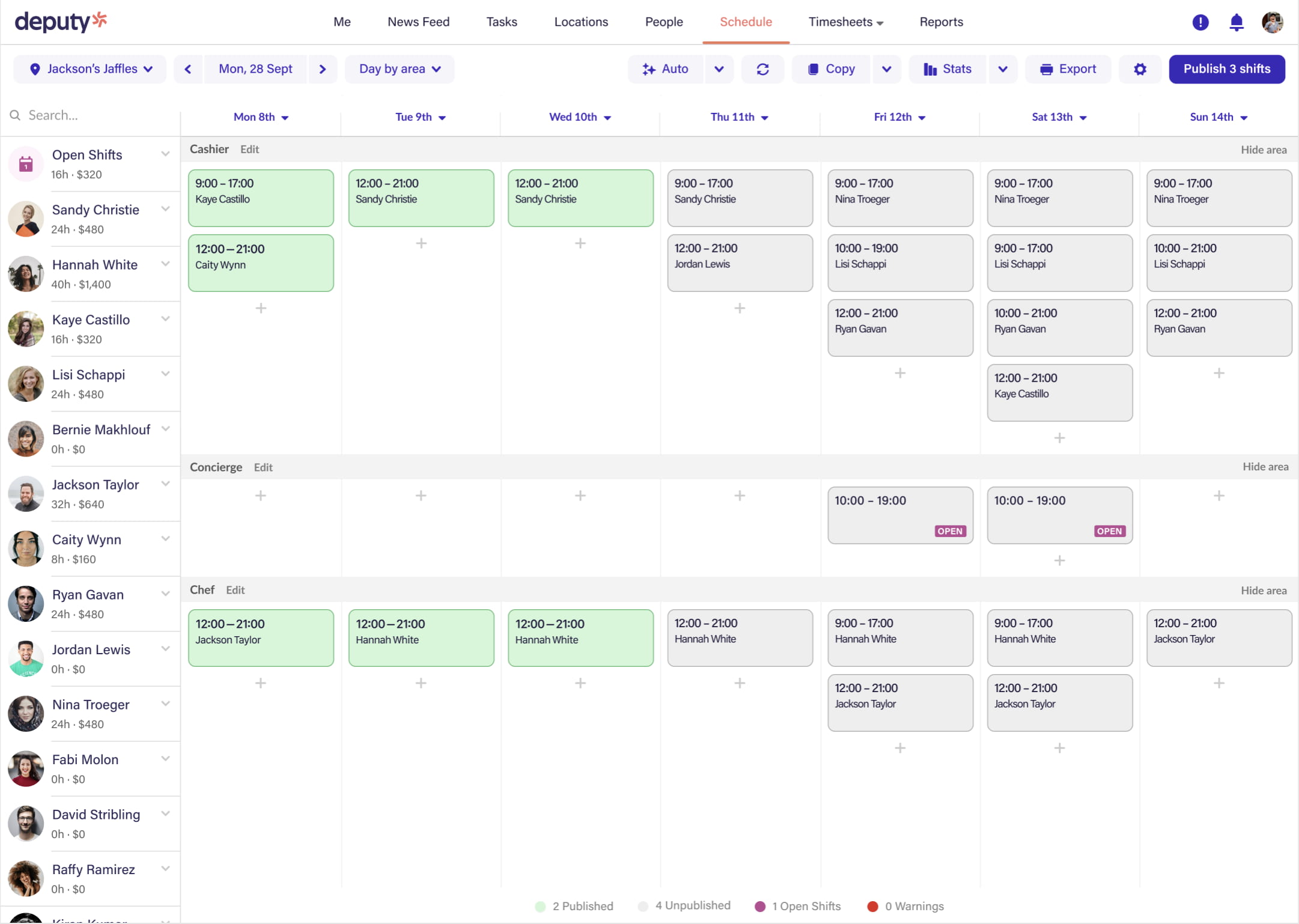 Deputy is the ultimate workforce manager, offering you the best technology in a web based solution. Simplifying your scheduling, timesheets, tasking, and employee communication. With brilliant award interpretation and one click payroll integration, ensure employees are paid correctly and payroll is done in record time .
